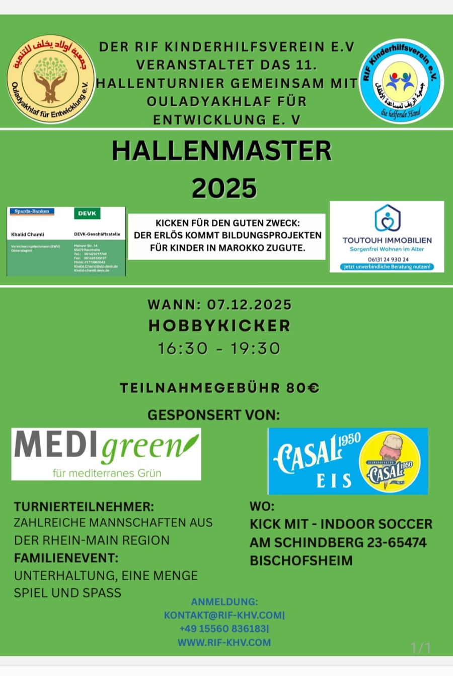 Von den frühen Morgenstunden bis zum frühen Abend war die Halle durchgehend erfüllt von Energie, Teamgeist und Begeisterung. Auch in diesem Jahr konnten wir durch das Turnier wertvolle Einnahmen erzielen, die vollständig in unsere Bildungsprojekte fließen. Ein wesentlicher Teil wird weiterhin für das Fußballplatz-Projekt in Tizi Tazouggart eingesetzt – insbesondere für die Anschaffung und Verlegung des Kunstrasens, um den Platz langfristig nutzbar zu machen.